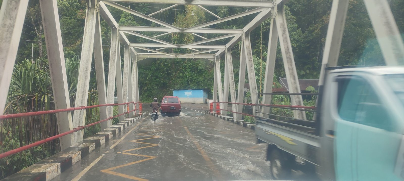 “Selalu saja tergenang air pak saat hujan, kadang saya pribadi takut melintasi jembatannya karena takut terjadi apa-apa saat sedang melintasinya,” ujarnya.